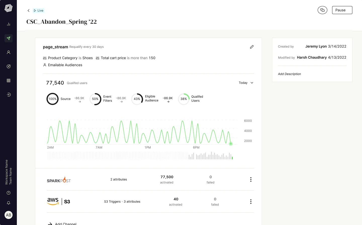 Explore, augment, and activate hyper-segmented audiences with AI-driven insights and predictive models. Launch, test, and optimize omnichannel journeys across owned and paid channels using out-of-the-box integrations and an intuitive drag-and-drop UI.