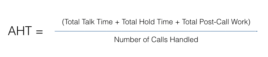 This metric measures the average length of time it takes the call center agent to resolve the customer’s issue, and factors in the entire duration of the interaction, including total talk time, hold time and all of the follow-up or admin tasks related to the call. The formula looks like this: