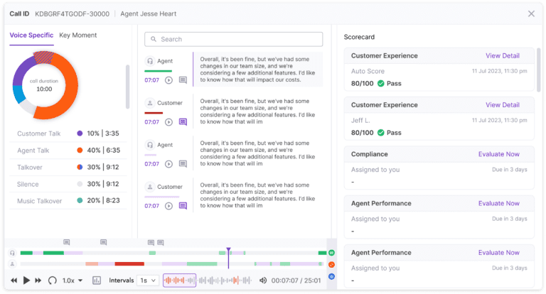 Quality analysts can leverage automated quality management (QM) functionality to accelerate and scale the quality assurance process using AI and conversational analytics. Capabilities like searchable call transcripts, customer sentiment analysis and end-to-end automated interaction scoring help to streamline QM processes while facilitating compliance and risk management.