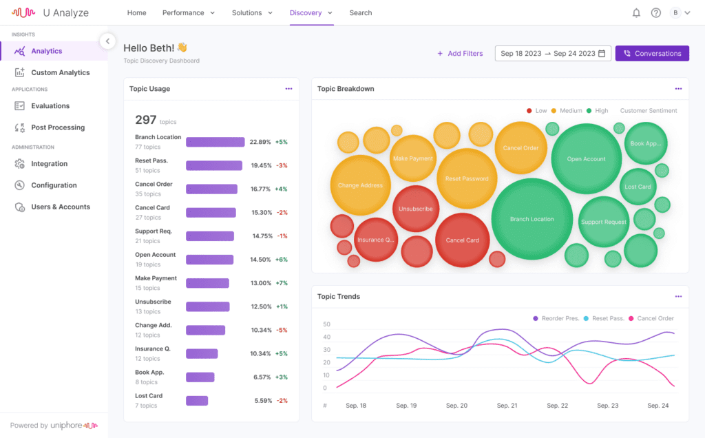 As a leading AI innovator, Uniphore provides conversational analytics powered by Generative AI and LLMs to overcome the rigid constraints of keyword-based business rules—enabling the discovery of customer intents, identification of use cases, and delivery of actionable insights.