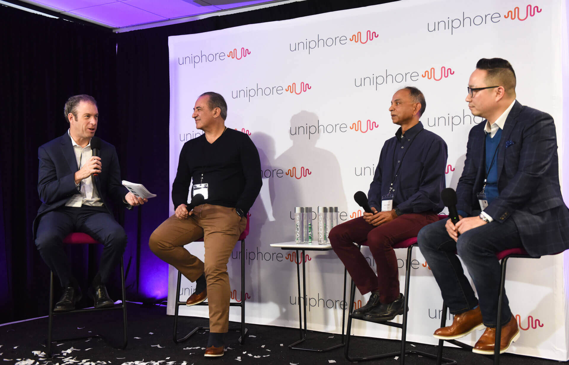 Following the executive discussion, there was a panel discussion moderated by Scott Budman, NBC’s Business and Tech reporter. Panelists included Cosimo Spera, Uniphore’s lead Data Scientist and AI expert, Hemant Bhargava a thought leader in disruptive technology platforms from UC Davis’ Graduate School of Management and Daniel Hong, vice president and research director for digital transformation in customer engagement and collaboration at Forrester Research.