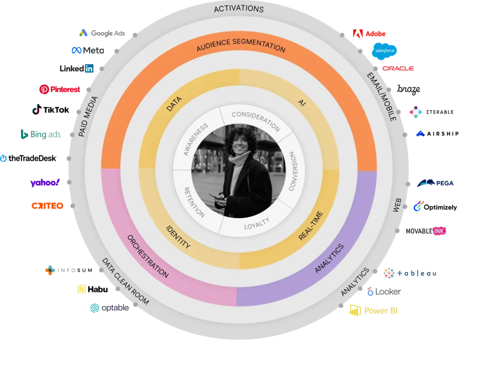 It creates a single, persistent, 360-degree customer profile by activating a customer’s dataset through either a composable or traditional deployment to enable personalized experiences at scale to increase your performance goals, from lifetime value and customer acquisition costs to improving ROI and efficiency goals.